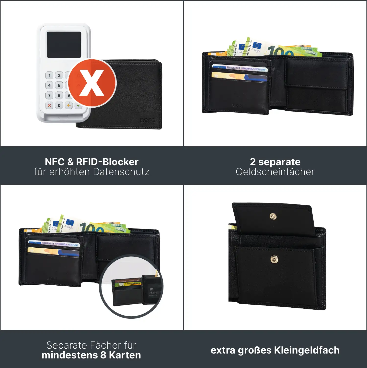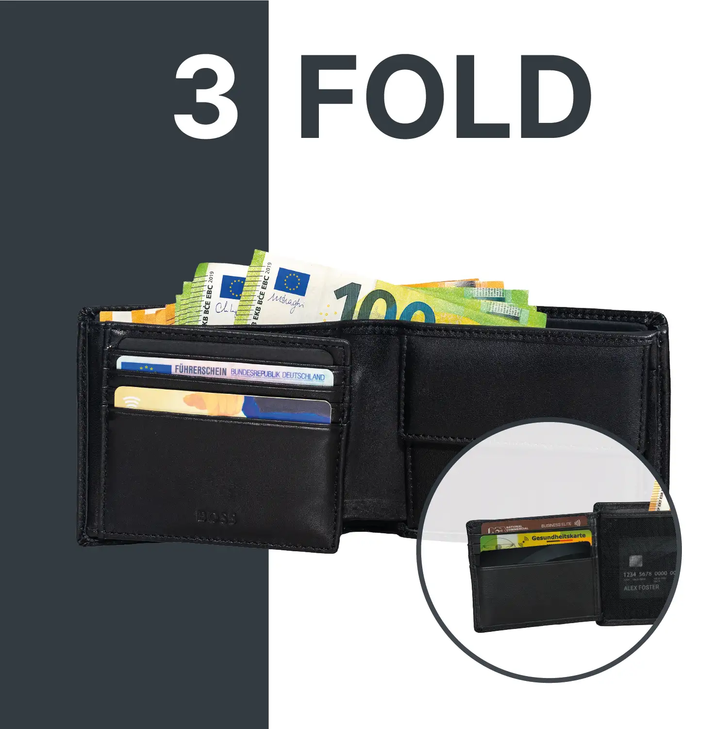 Das 3-Fold Design bietet viel Platz für Karten, Scheine und Kleingeld, ohne dabei wuchtig zu wirken. Mehrere Kartenfächer ermöglichen eine übersichtliche Organisation im Alltag.