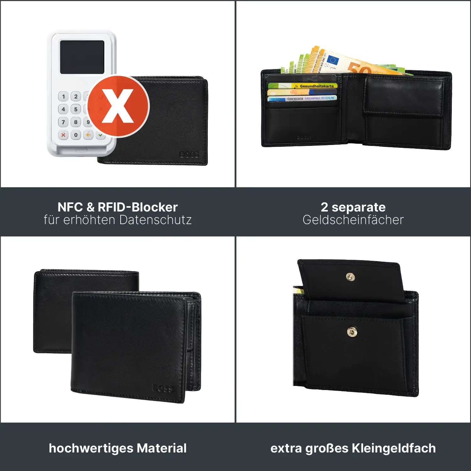 ✔ Dezente BOSS Prägung außen sowie innen für eine moderne, klare Markenwirkung