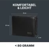 Ein integrierter RFID- & NFC-Blocker schützt sensible Kartendaten zuverlässig vor ungewolltem Auslesen. Gerade bei kontaktlosen Zahlungsmitteln sorgt diese Technologie für zusätzliche Sicherheit im Alltag, auf Reisen oder in öffentlichen Verkehrsmitteln.