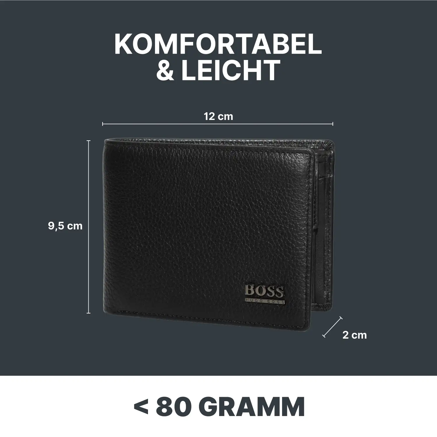 Das Hugo Boss Monist Portemonnaie liegt trotz seiner Kapazität angenehm in der Hand. Saubere Nähte, stabile Kanten und die ausgewogene Materialstärke sorgen für eine lange Lebensdauer und ein hochwertiges Tragegefühl.
