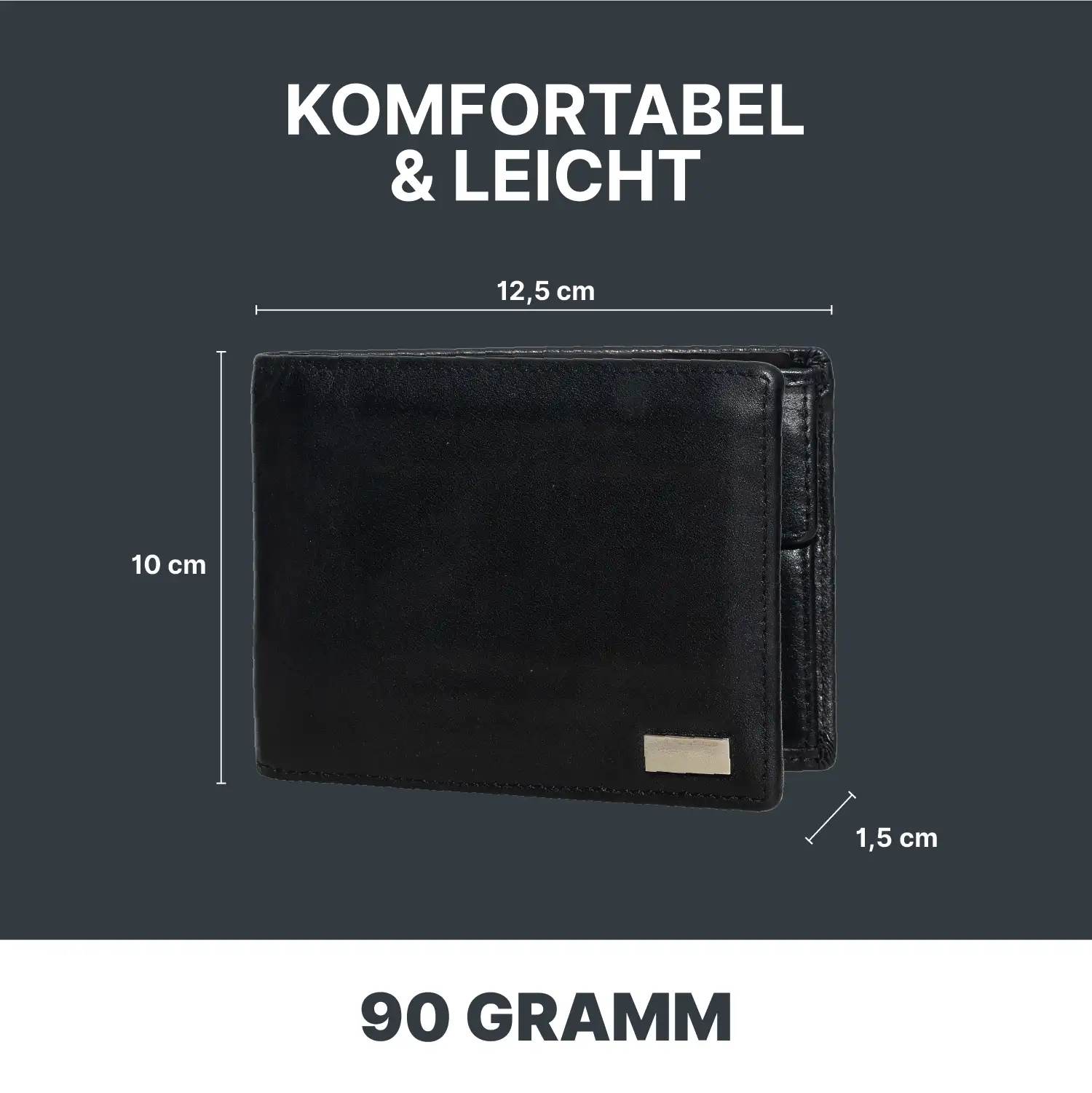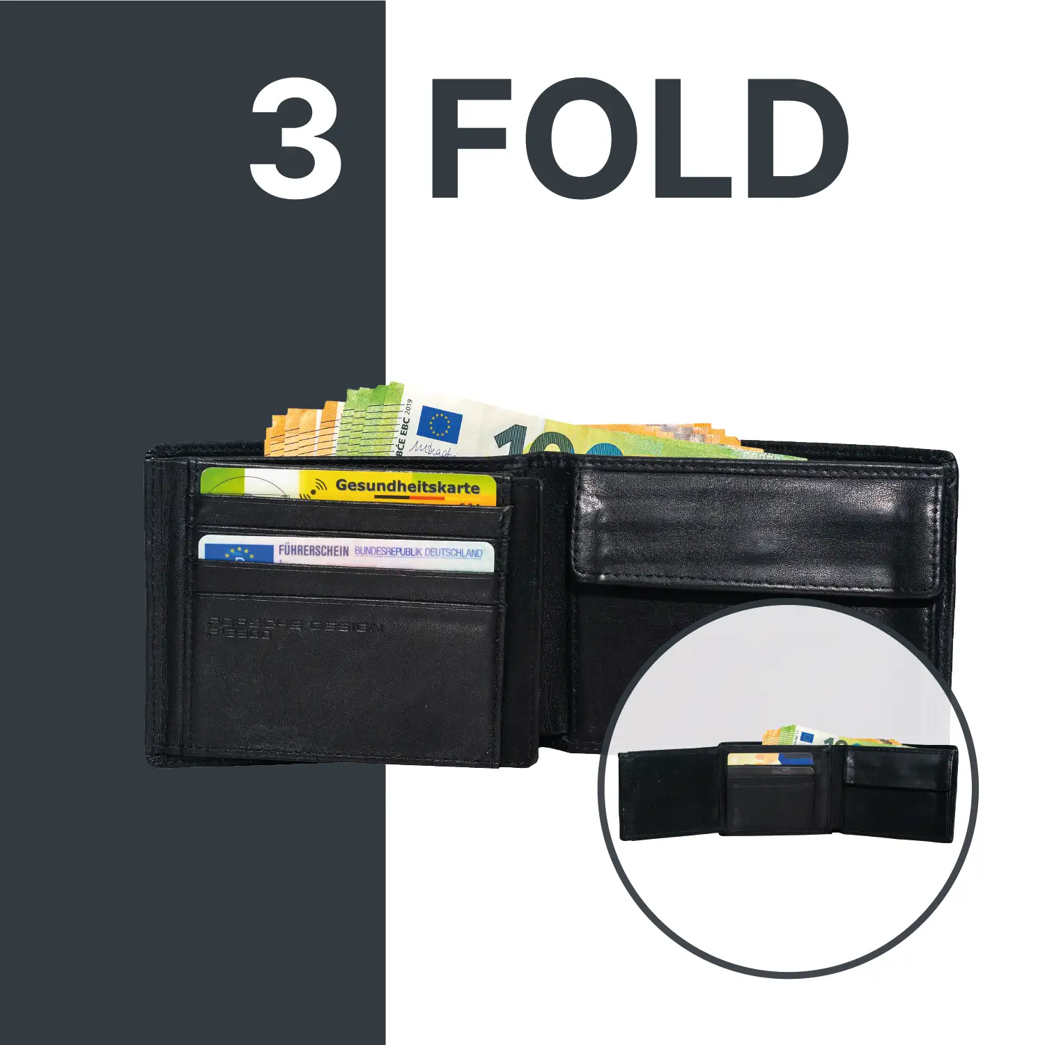 ✔ Trifold Herren Portemonnaie aus glattem, leicht glänzendem Echtleder mit edlem Metall-Emblem auf der Vorderseite